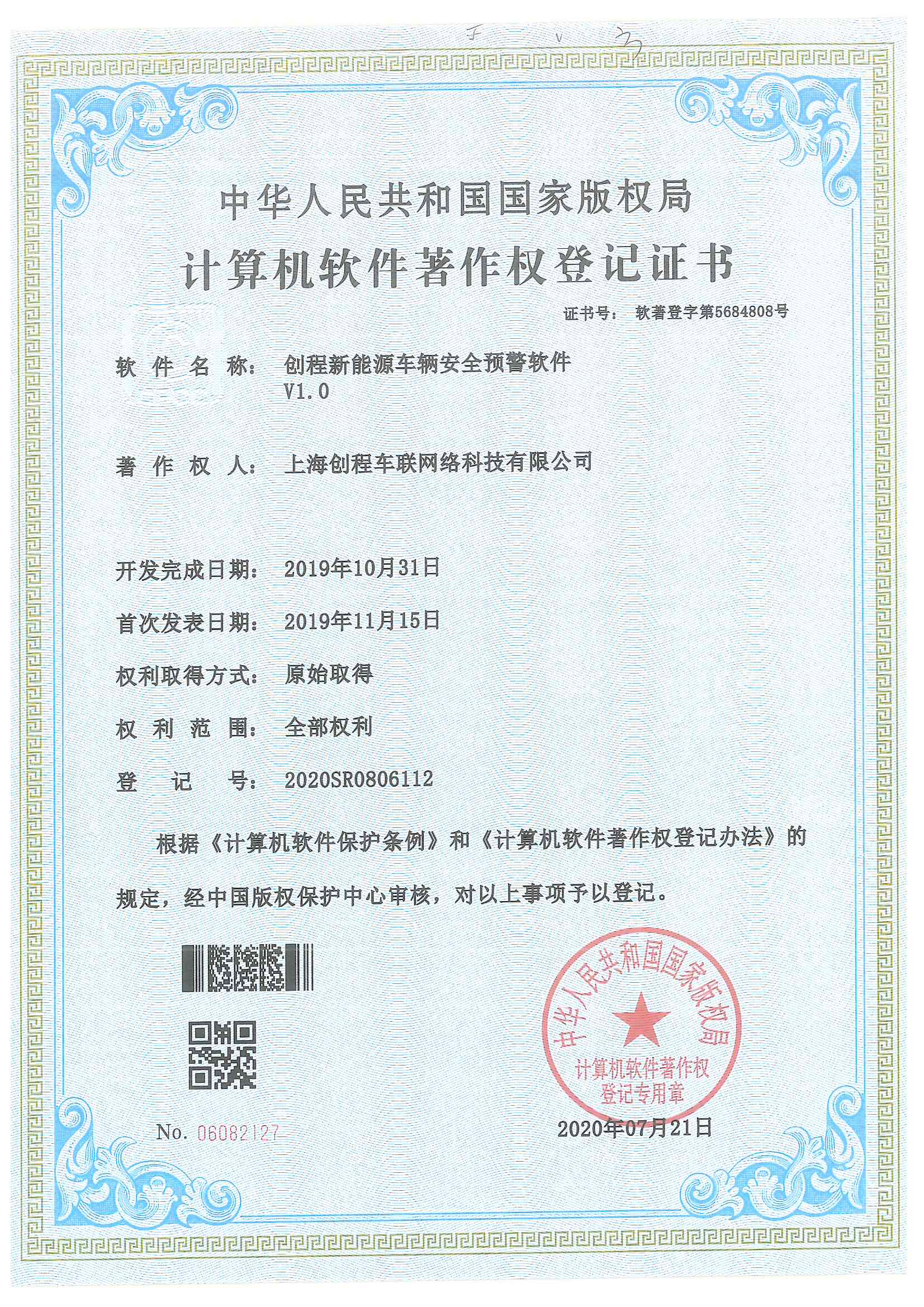 • 創(chuàng)程新能源車輛安全預警軟件V1.0