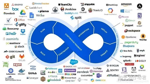 無(wú)論是縱向集成還是橫向集成,DevOps都需要通過工具鏈與持續(xù)集成、交付、反饋與優(yōu)化進(jìn)行端到端整合。如華為的軟件開發(fā)云服務(wù), 基于二十幾年的研發(fā)實(shí)踐,融合DevOps理念方法,為企業(yè)提供一站式的云上開發(fā)工具平臺(tái)。華為軟件開發(fā)云提供項(xiàng)目管理、配置管理、代碼檢查、編譯構(gòu)建、測(cè)試、部署、發(fā)布等端到端地覆蓋全軟件生命周期的相關(guān)服務(wù)。類似的DevOps 工具數(shù)不勝數(shù),常見的DevOps 生態(tài)圈工具如圖 5。